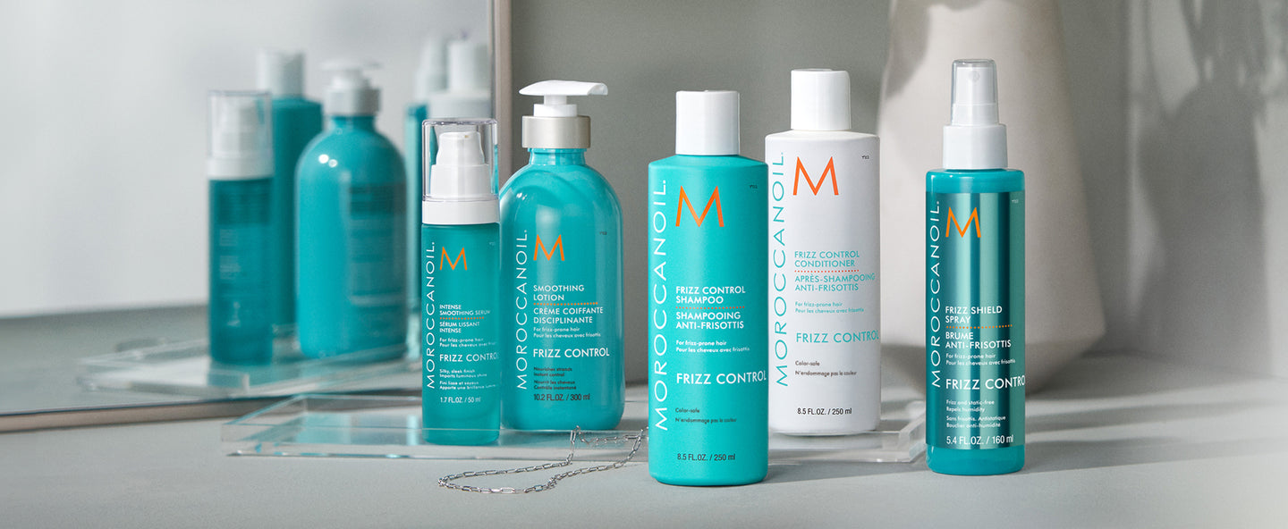 ***Basierend auf instrumentellen Tests der Wirkung von Moroccanoil Frizz Control Shampoo und Frizz Control Conditioner bei Verwendung mit Moroccanoil Frizz Shield Spray.