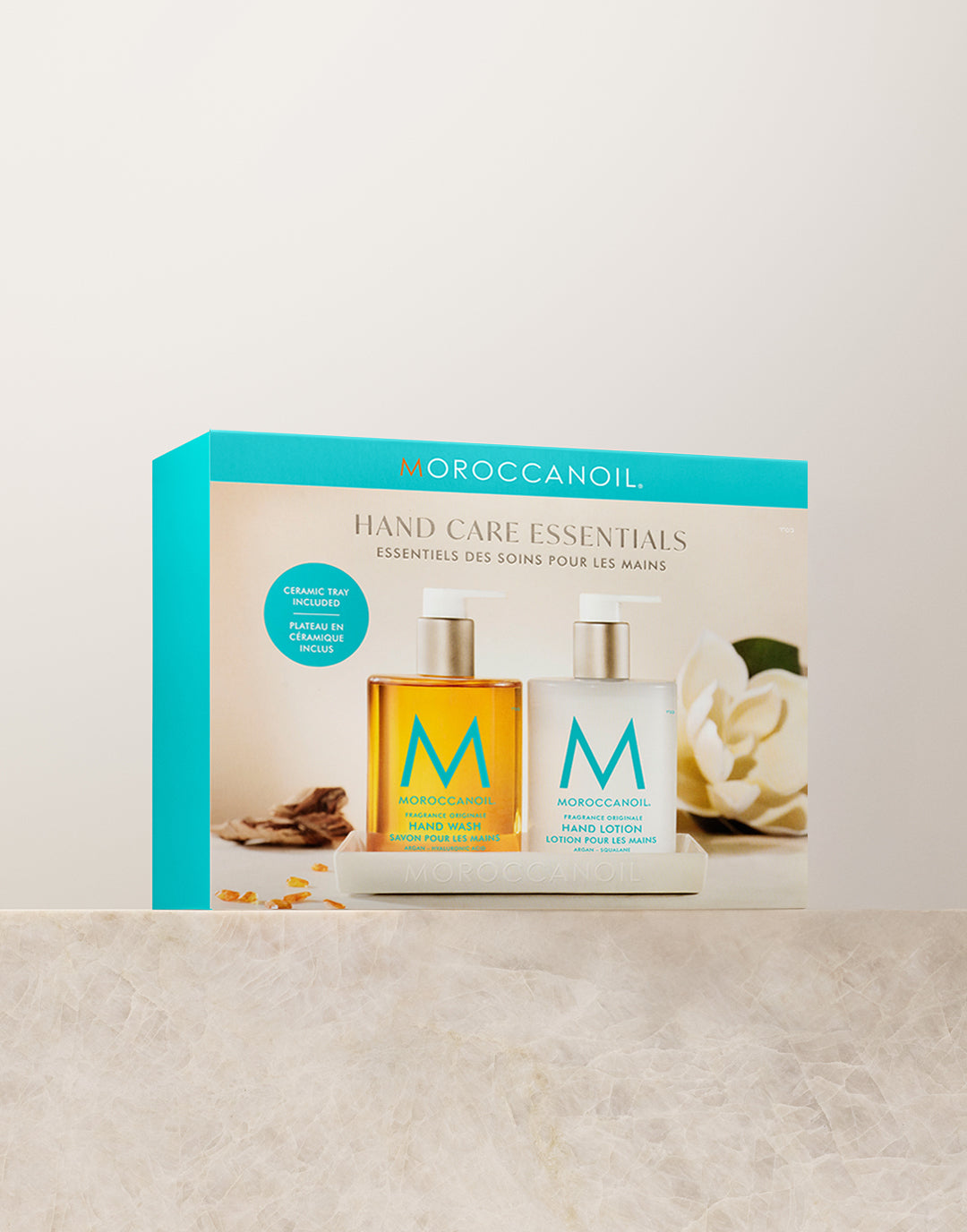 Das Duo bereichert mit seiner Keramikschale nahtlos jedes Waschbecken und versorgt die Hände mit der notwendigen Pflege.